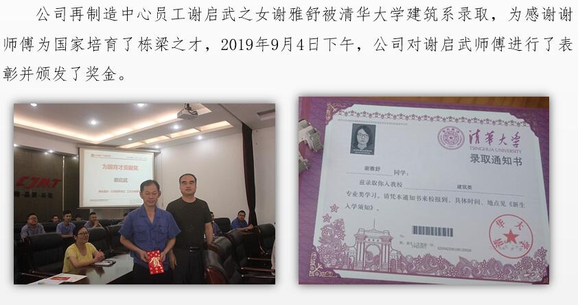 公司為謝啟武師傅頒發(fā)“為國育才貢獻獎”