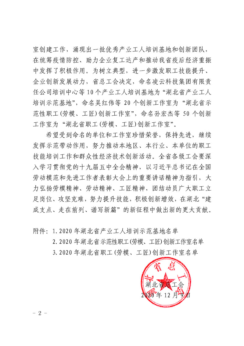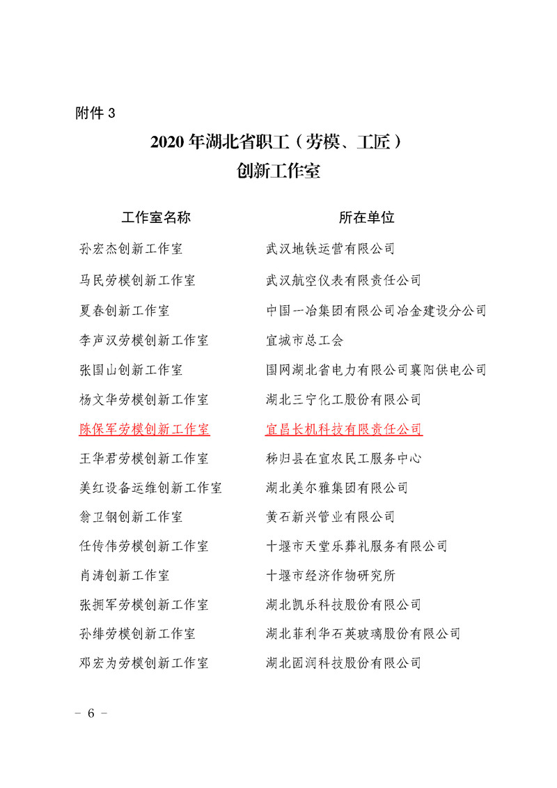 陳保軍勞模工作室被命名為“湖北省職工(勞模、工匠)創(chuàng)新工作室”